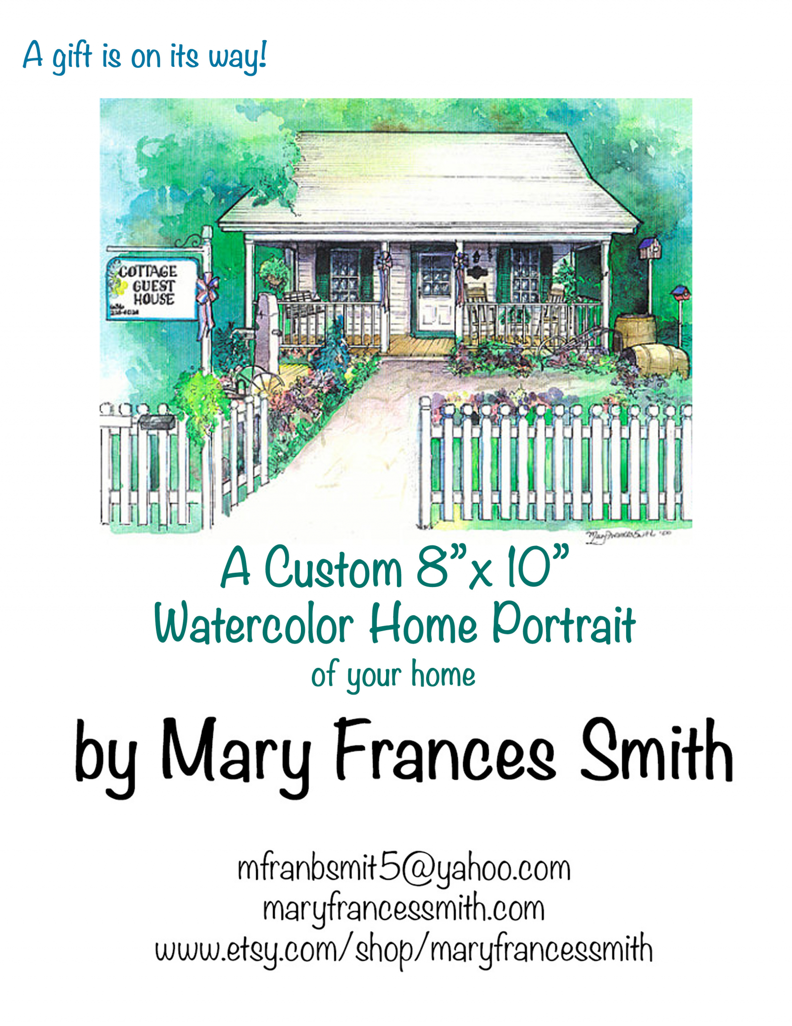House portrait will be 8"x 10", and arrive in an 11"x 14" mat, sized to fit perfectly in a standard sized frame.